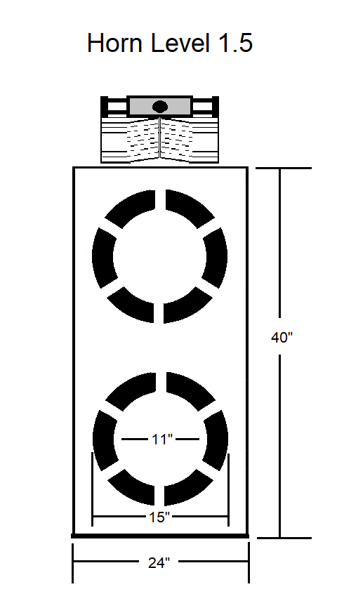 The Two Chris’ out of an abundance of enthusiasm waiting to build the HL2 decided to build the HL2 Bass section with the horn/lens from the HL1. So since it is 1/2 way between the two designs I guess we should call it the Horn Level 1.5 (HL1.5), thus it became a thing. The bass baffle can be as narrow as 21″ and wider if you like. Please look at the HL2 plans for more details with this U or H bass baffle.